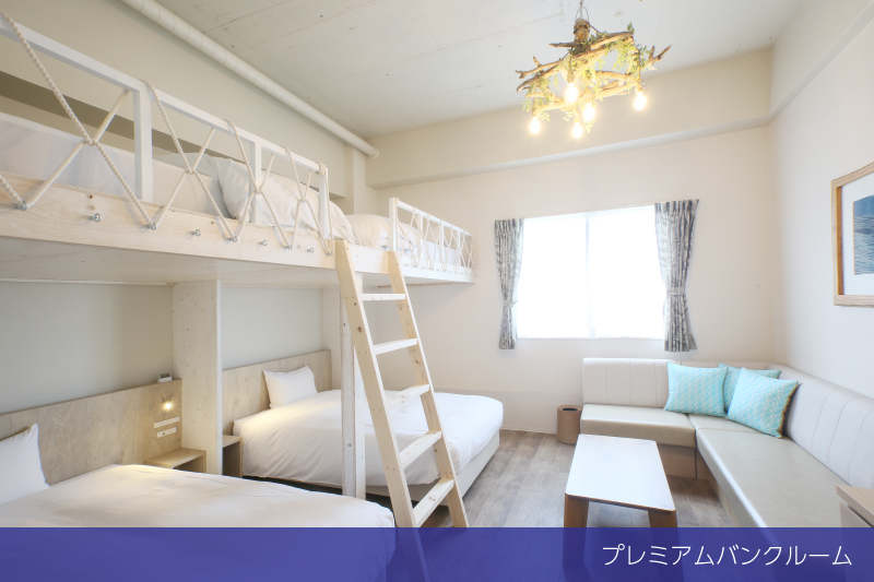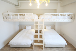 面積:26㎡ / 客室数:禁煙タイプ2室 / 客室階:4階 / 眺望:ハーバービュー / 定員:最大4名 ※お子様の添い寝は、大人1名(1ベッド)に対して1名までとなります。 / ベッドサイズ:W120cm×2台(下段)・W100cm×2台(上段)