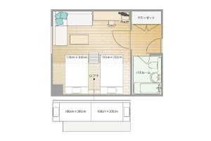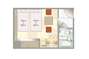 面積:19㎡ / 客室数:禁煙タイプ1室 / 客室階:2階 / 眺望:シティービュー / 定員:最大3名 ※お子様の添い寝は、大人1名(1ベッド)に対して1名までとなります。 / ベッドサイズ:敷布団タイプW100cm×3セット